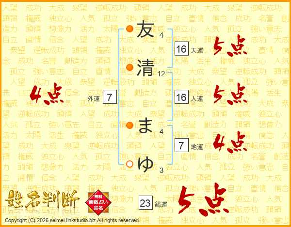友(4画)清(12画) ま(4画)ゆ(3画)