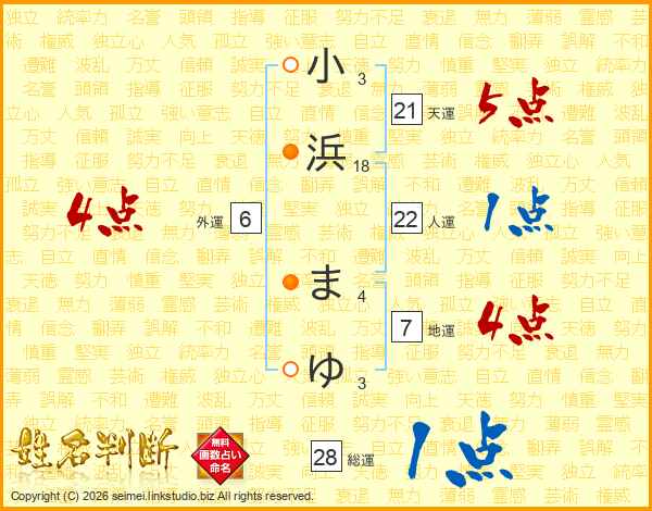 小浜まゆさんの総運は28画の1点!