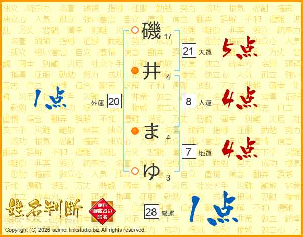 磯(17画)井(4画) ま(4画)ゆ(3画)