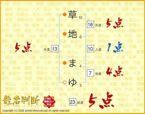草地まゆさんの総運は23画の5点!