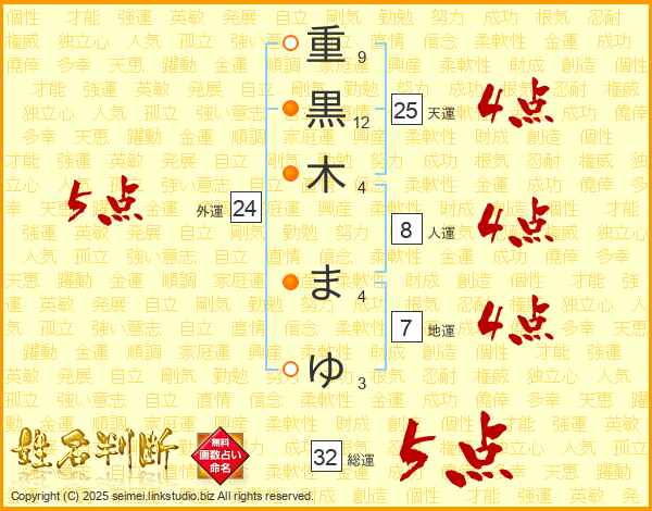重黒木まゆさんの天運は25画の4点!