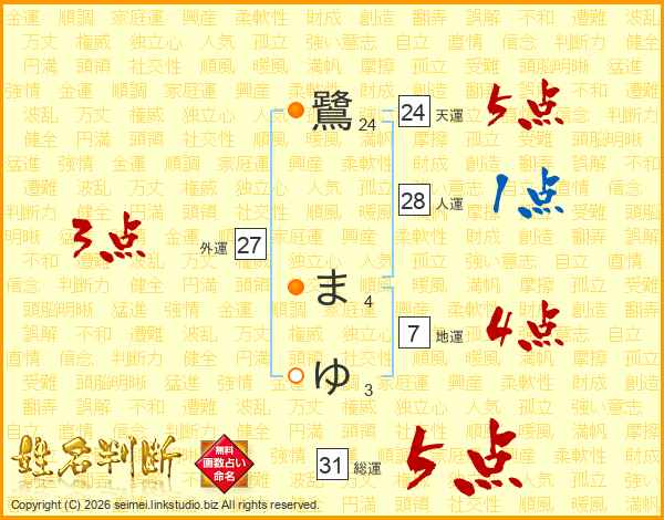 鷺まゆさんの総運は31画の5点!