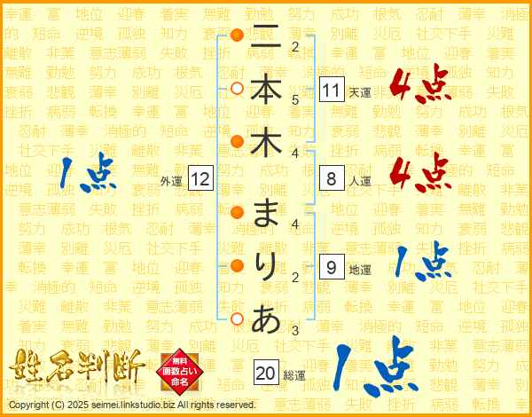 二本木まりあさんの天運は11画の4点!