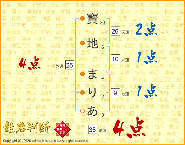 寳地まりあさんの総運は35画の4点!
