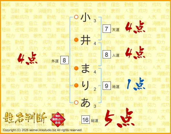 小井まりあさんの総運は16画の5点!