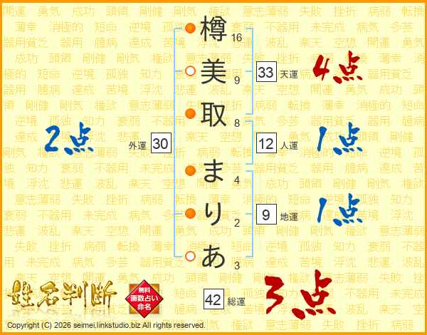 樽美取まりあさんの天運は33画の4点!