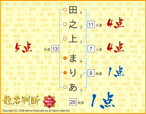 田之上まりあさんの天運は11画の4点!