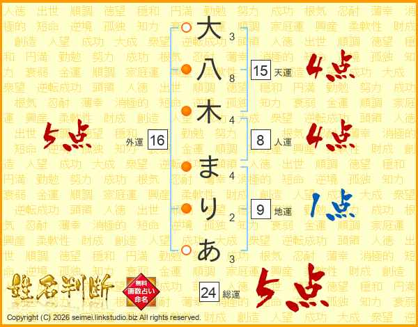 大八木まりあさんの外運は16画の5点!