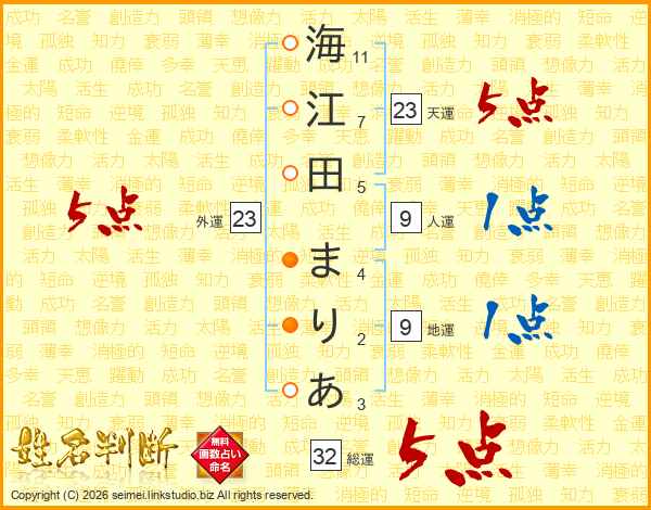 海江田まりあさんの天運は23画の5点!