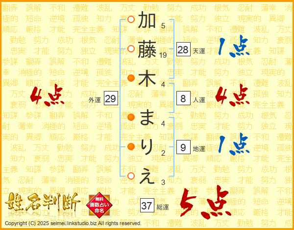 加藤木まりえさんの総運は37画の5点!