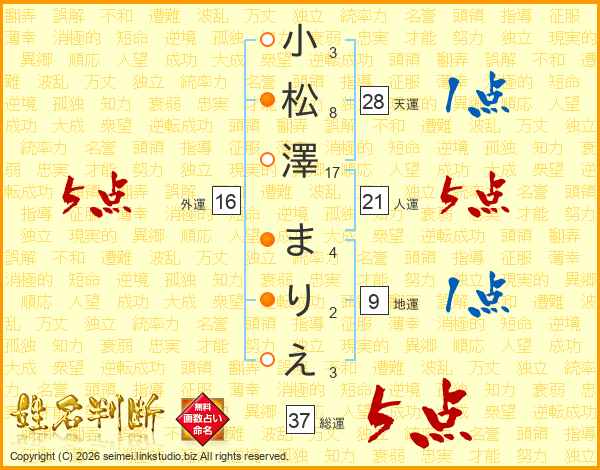 小(3画)松(8画)澤(17画) ま(4画)り(2画)え(3画)