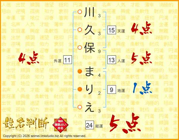 川久保まりえさんの総運は24画の5点!