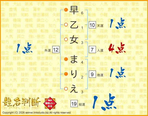 早乙女まりえさんの人運は7画の4点!