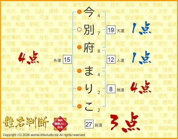 今別府まりこさんの総運は27画の3点!