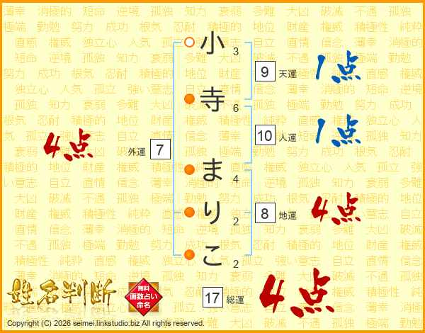 小寺まりこさんの総運は17画の4点!