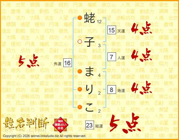 蛯子まりこさんの総運は23画の5点!