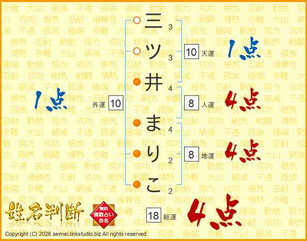 三ツ井まりこさんの総運は18画の4点!