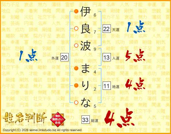 伊良波まりなさんの総運は33画の4点!