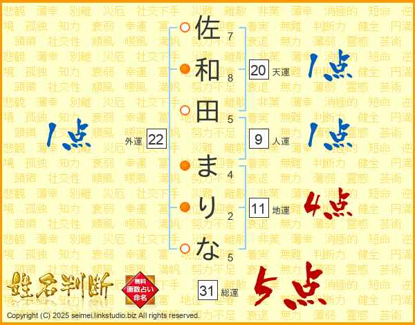佐和田まりなさんの総運は31画の5点!