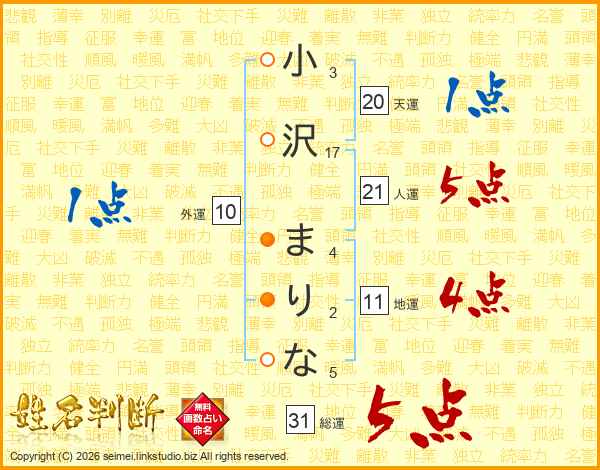 小(3画)沢(17画) ま(4画)り(2画)な(5画)