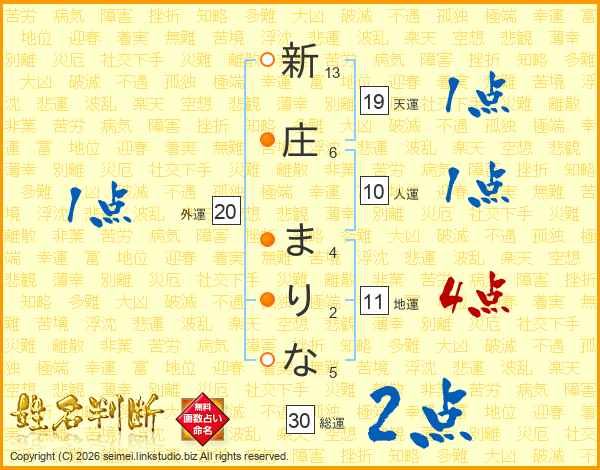 新(13画)庄(6画) ま(4画)り(2画)な(5画)