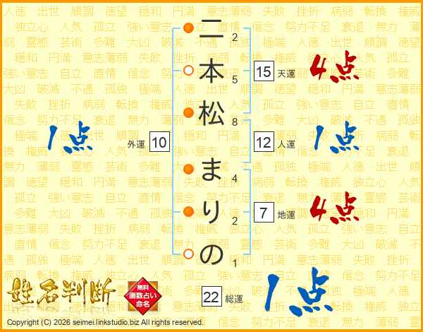 二(2画)本(5画)松(8画) ま(4画)り(2画)の(1画)