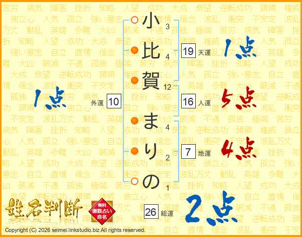 小(3画)比(4画)賀(12画) ま(4画)り(2画)の(1画)