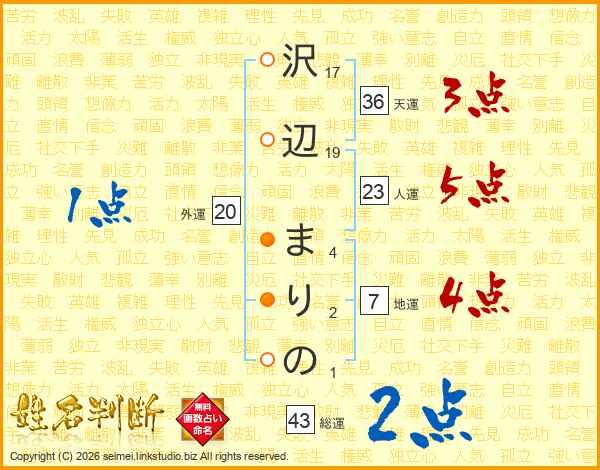 沢辺まりのさんの総運は43画の2点!