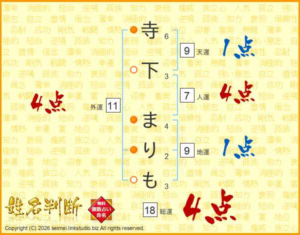 寺(6画)下(3画) ま(4画)り(2画)も(3画)