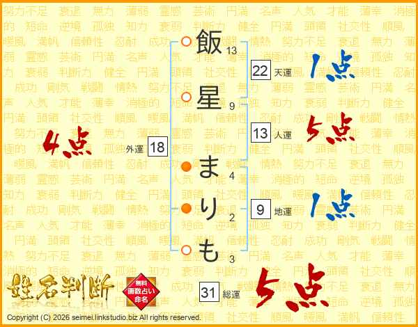 飯星まりもさんの総運は31画の5点!