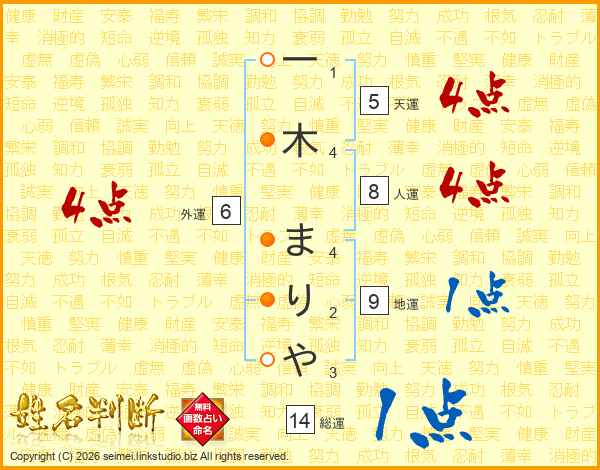 一木まりやさんの総運は14画の1点!