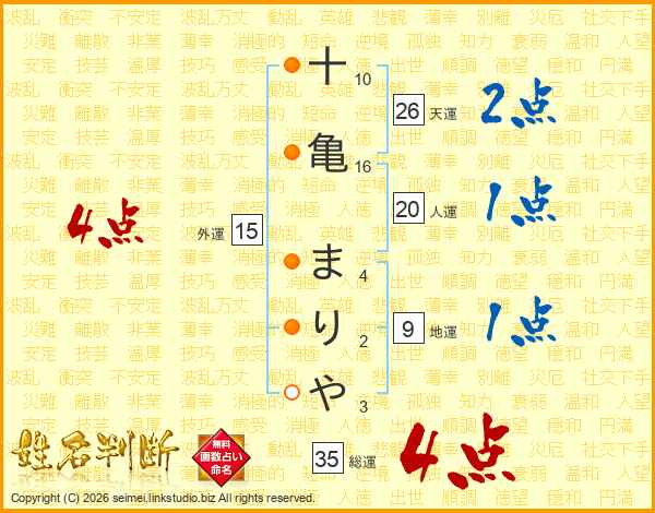 十亀まりやさんの天運は26画の2点!