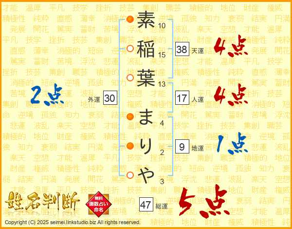素稲葉まりやさんの総運は47画の5点!