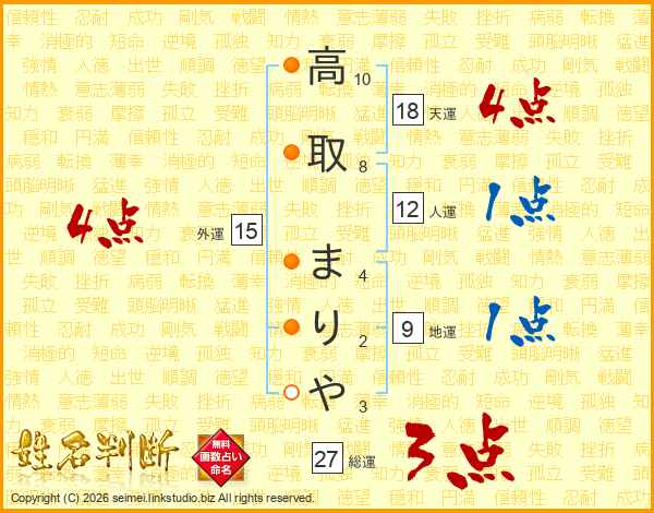 高取まりやさんの総運は27画の3点!