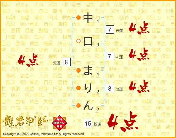 中(4画)口(3画) ま(4画)り(2画)ん(2画)