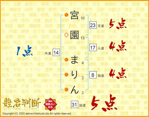 宮(10画)園(13画) ま(4画)り(2画)ん(2画)