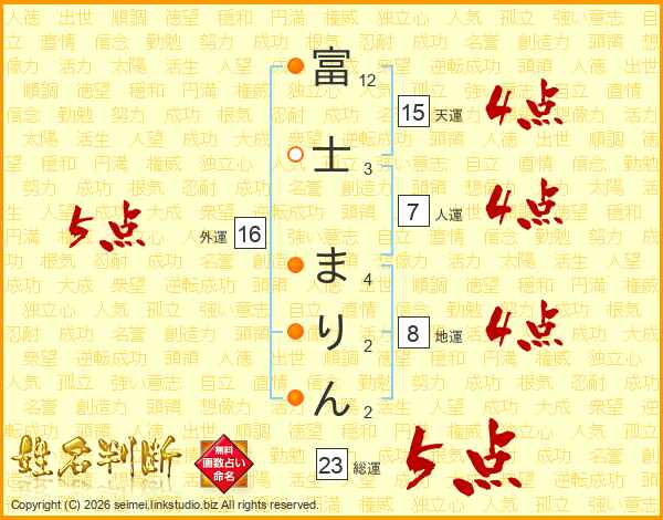 富士まりんさんの天運は15画の4点!