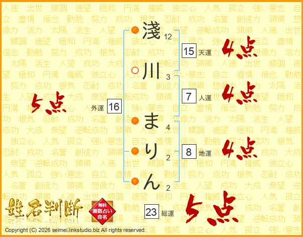 淺川まりんさんの総運は23画の5点!