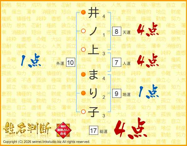 井ノ上まり子さんの総運は17画の4点!