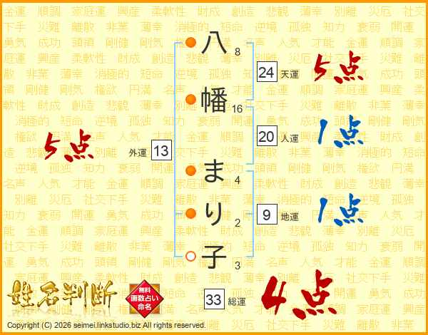 八幡まり子さんの総運は33画の4点!