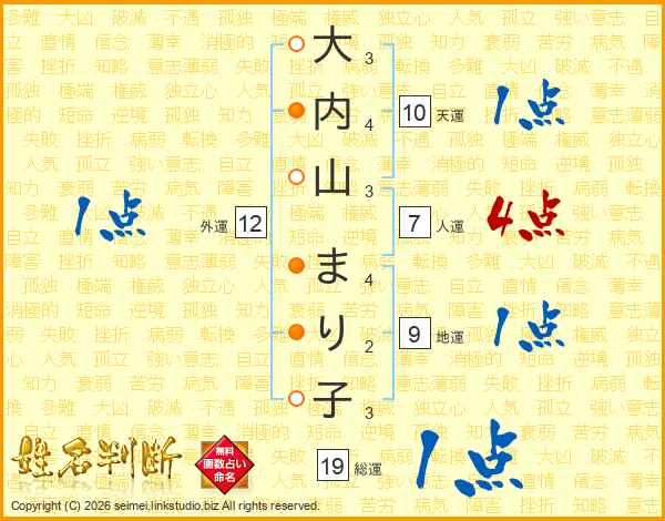 大内山まり子さんの人運は7画の4点!