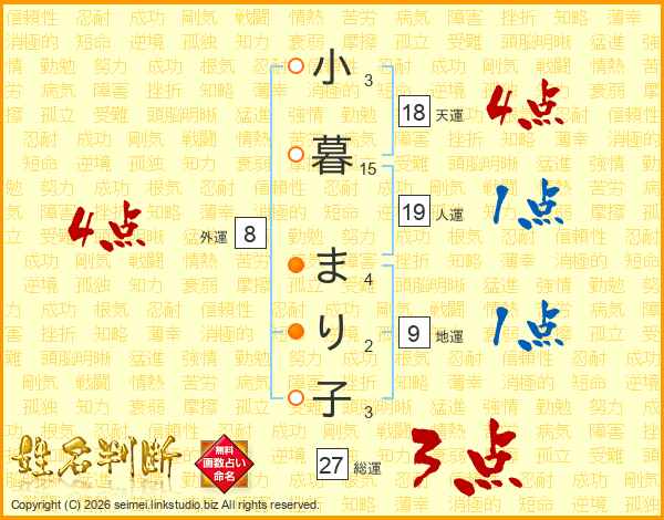 小暮まり子さんの総運は27画の3点!