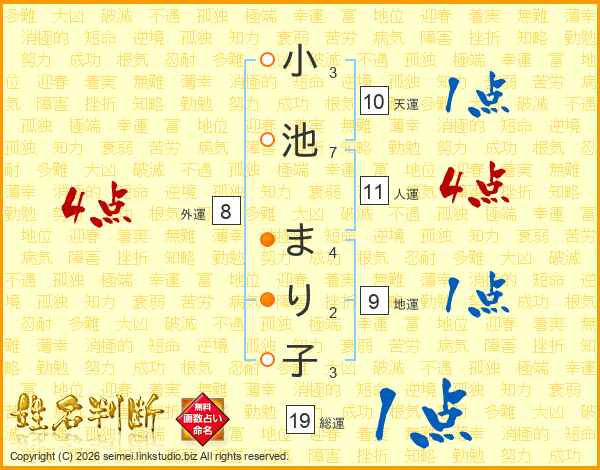 小(3画)池(7画) ま(4画)り(2画)子(3画)