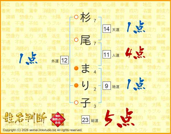 杉尾まり子さんの総運は23画の5点!
