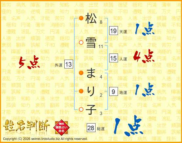 松雪まり子さんの外運は13画の5点!