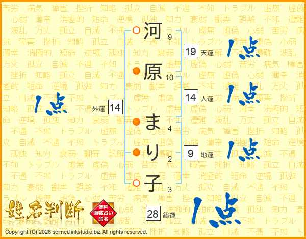 河原まり子さんの外運は14画の1点!