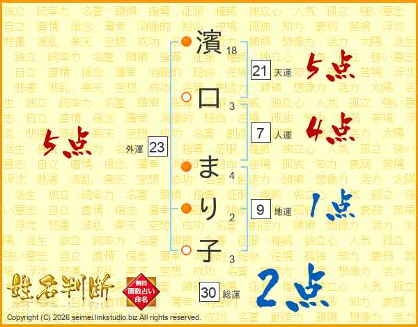 濱口まり子さんの総運は30画の2点!