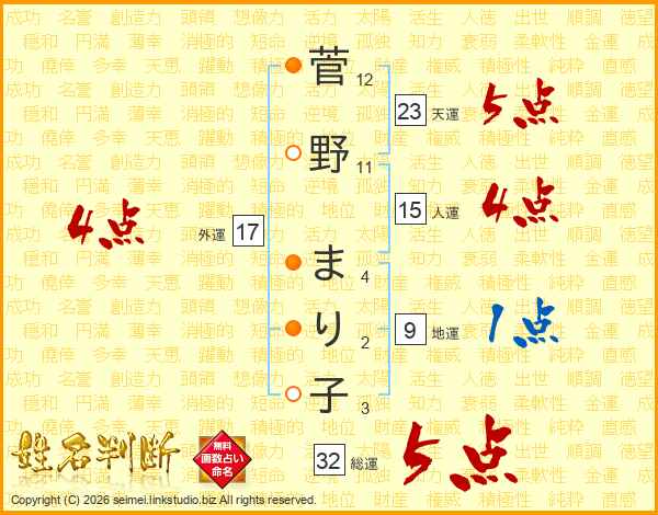 菅野まり子さんの総運は32画の5点!