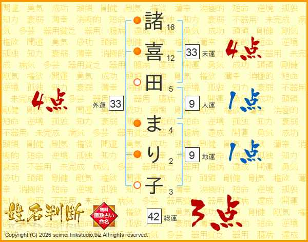 諸(16画)喜(12画)田(5画) ま(4画)り(2画)子(3画)