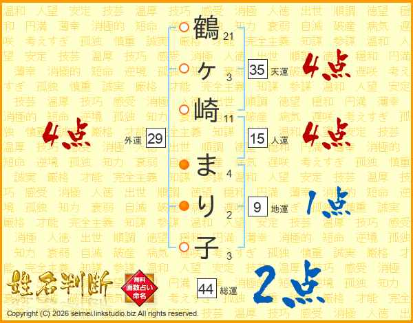 鶴ヶ崎まり子さんの天運は35画の4点!